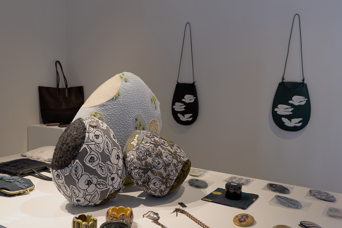 2025年7月7日まではオープニング企画展「minä perhonen展」を開催中。〈ミナ ペルホネン〉のテキスタイルを使って作られたバッグやインテリア用品、陶作家・安藤雅信と皆川 明がコラボレーションしたテーブルウェア、イタリアのジュエリーブランド〈Donatella Pellini(ドナテラ・ペリーニ)〉とのコラボレーションによるアクセサリーなど、ここでしか出会えないアイテムも多数展開されている。