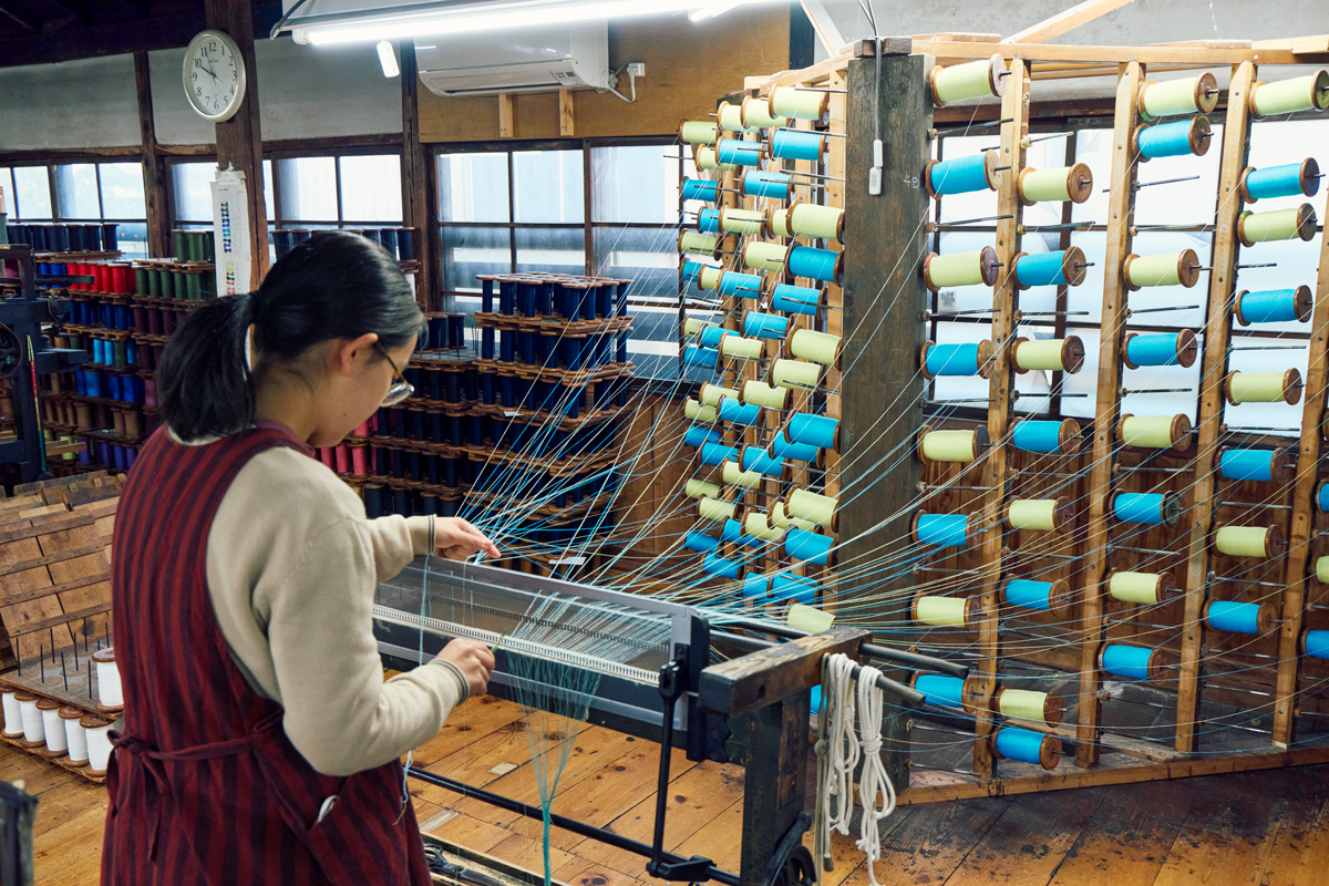 「一番の魅力は風合いです。手間はかかっても綿本来の質感が残りやすい〝かせ染め〞で染色し、昔ながらのシャトル織機(しょっき)で生地を織る。節のある糸を緯糸(よこいと)に使い、ザラッとした昔の木綿の肌触りにも近づけています」