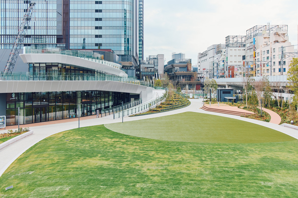 芝生が広がる、広大な「TRACKS PARK」