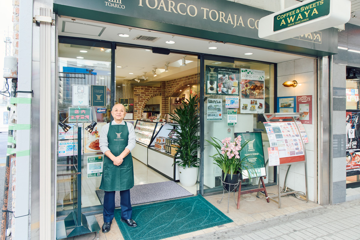 JR大井町駅から歩いて1分足らず、「大井銀座商店街」の入口に〈COFFEE & SWEETS AWAYA〉がある。1945年の創業以来、近隣住人や大井町で働く人たちから愛されている、この街の憩いの場だ。なかには、毎日同じ時間にお気に入りの席で過ごす常連の姿も。