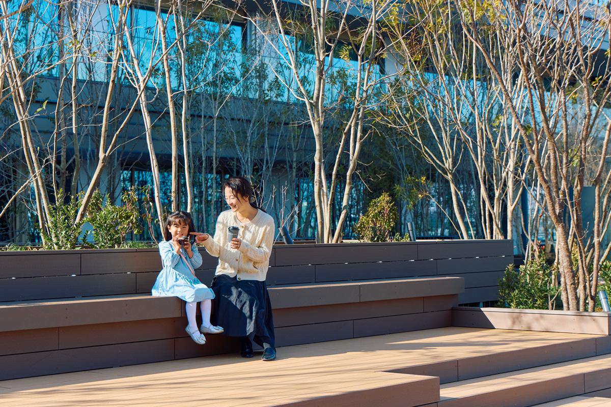 「いろんな楽しみ方ができる複合施設は、便利なので普段からよく利用するのですが、窮屈なところはちょっと苦手で。その点、〈OIMACHI TRACKS〉はゆったりとしたつくりで、歩きながら光や風を感じることができるのもいいですね。子どもと一緒にまた来たいと思います」とシナダさん。
