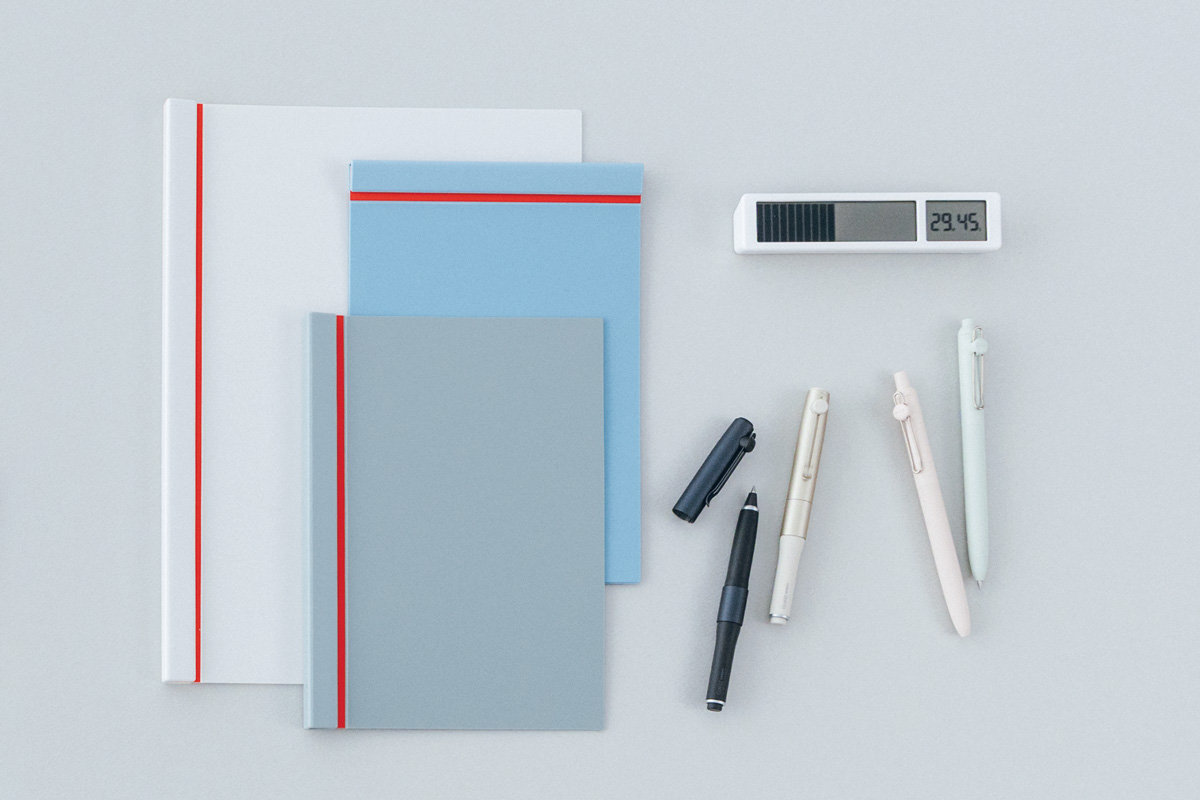 書き物の時間は、〝落書き〞ならぬ〝ラフ書き〞がKREVAさんのスタイル。ユニボールゼントは、そんなラフ書きにハマる一本。「0.5ミリもいいんですけど、0.7ミリがいい濃さでブワーッと書ける。特にシグニチャーモデルは、プロダクトとしての完成度の高さを感じます。それから、手に取って感動したのがSlideNote。端のクリップを〝カシャン〞と開閉する感触が気持ちいい!楽譜やラジオの台本などを入れて使っています」