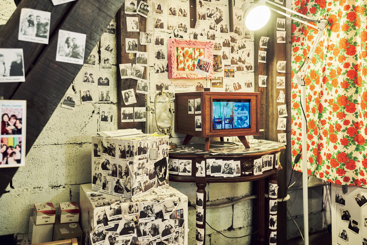 韓国ではフォトスペースをよく見かけるがこちらの写真館は異色。まるで駄菓子屋のような風情で、店内にはレトロな写真機が並ぶ。あえて最新機を置かないのはアナログ時代に一枚一枚大切に撮影して保存していた魅力を感じてほしいという思いから。