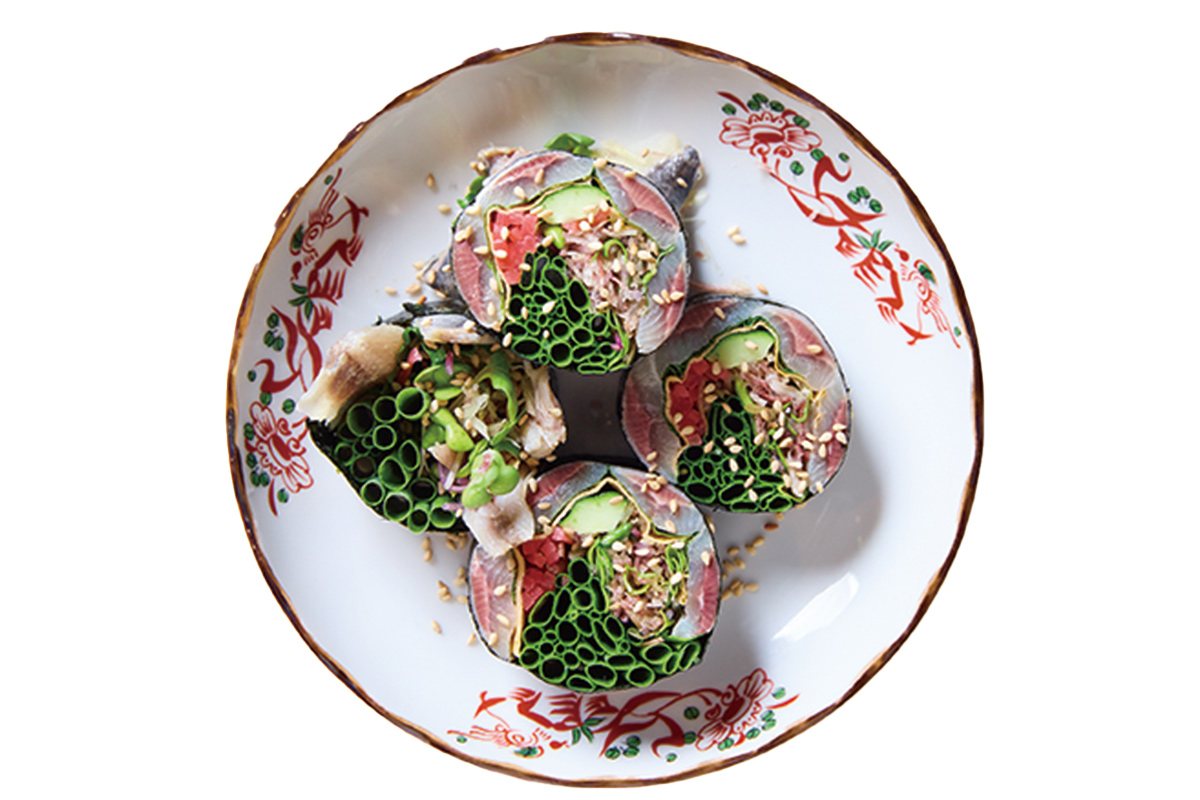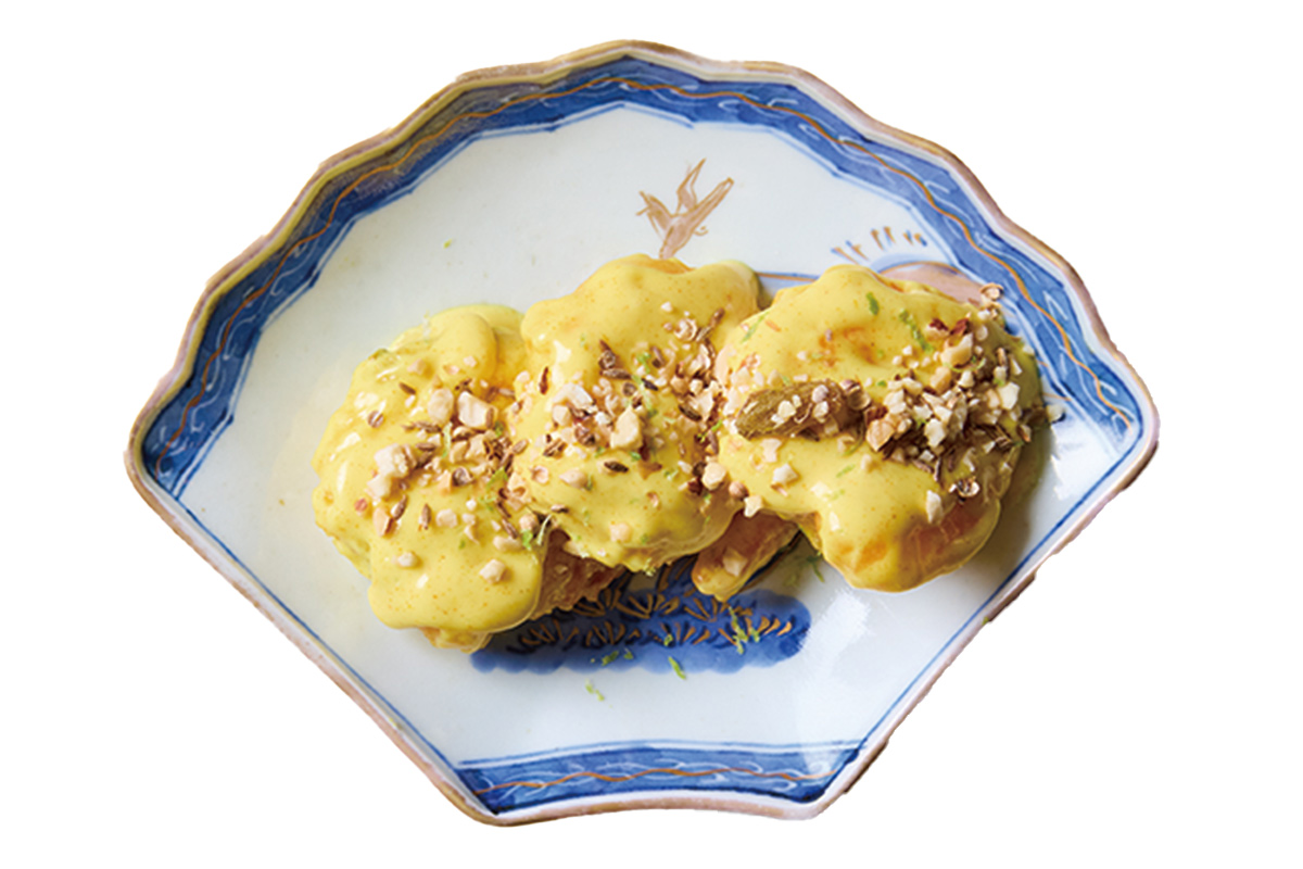 こちらでは、和洋のエッセンスと融合させた独自の中華を提案。豊洲市場から届く脂ののったマグロを四川風の味付けで、ナポリタンには辣油や中国野菜を、 と自由闊達。 “海老マヨ”なんて、ナッツとドライフルーツを振り、ライムを削ってある。