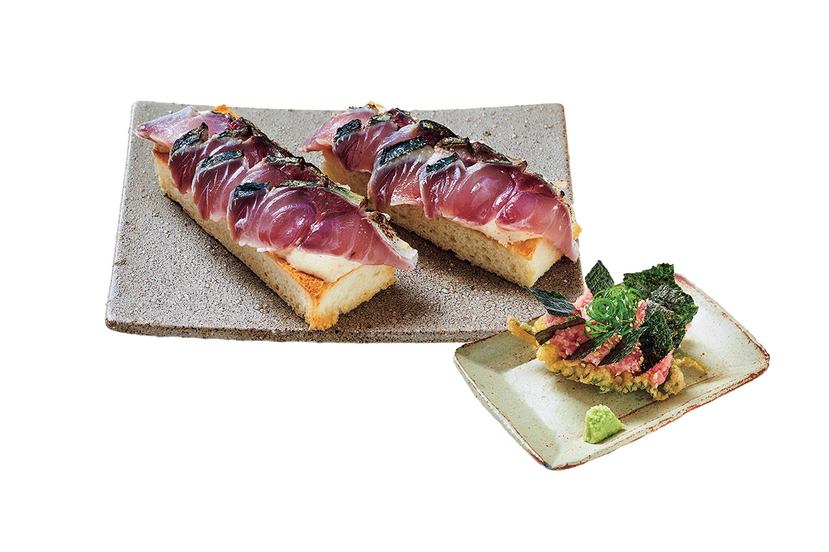いい塩梅の〆鯖をトーストにのせたブルスケッタや、大葉でキーマを包んで食べる一品など、興味をそそるつまみが多彩。あれこれ頼めるサイズ感と手頃な価格もいい! 店主の出身地、秩父名産のしゃくしな漬けを箸休めに、同郷のイチローズモルトもぜひ。