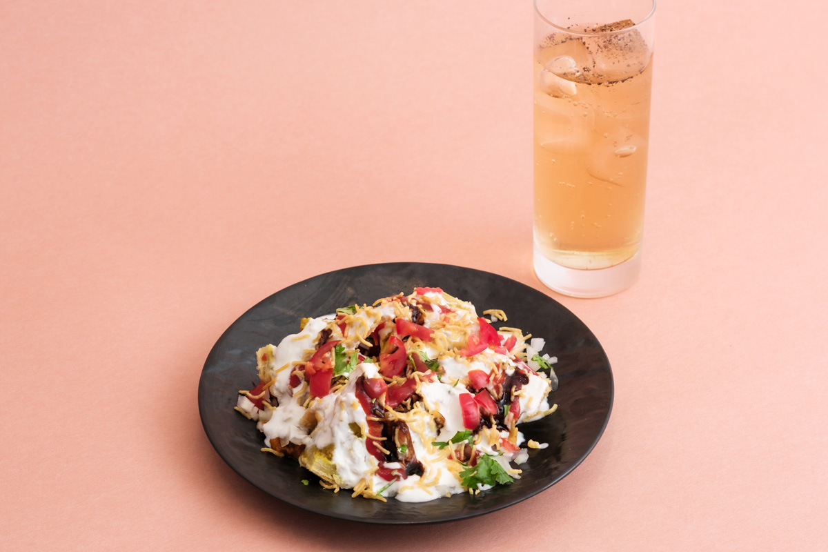 男爵じゃがいもを使用したサモサ、トマト、キュウリ、玉ねぎ、ひよこ豆と香菜を、ヨーグルトとタマリンド ミントソースで絡めたインド風ポテトサラダ。スパイス香るモスコミュールと相性抜群。