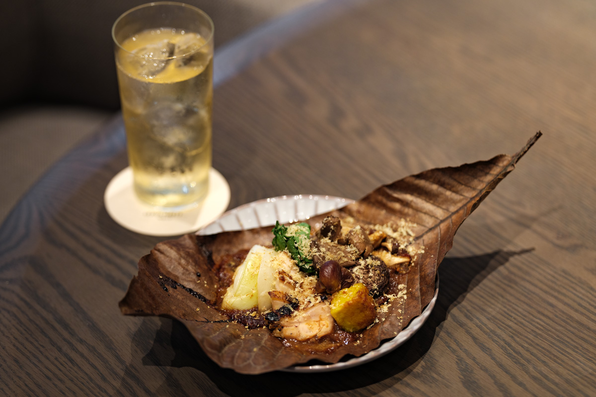 柚子香る大山鶏もも肉と茸たっぷりの秋の味覚を、自家製味噌で焼き上げ、季節の彩りと薫りを閉じ込めた特別な朴葉焼き。ハイボールと一緒にぜひ。