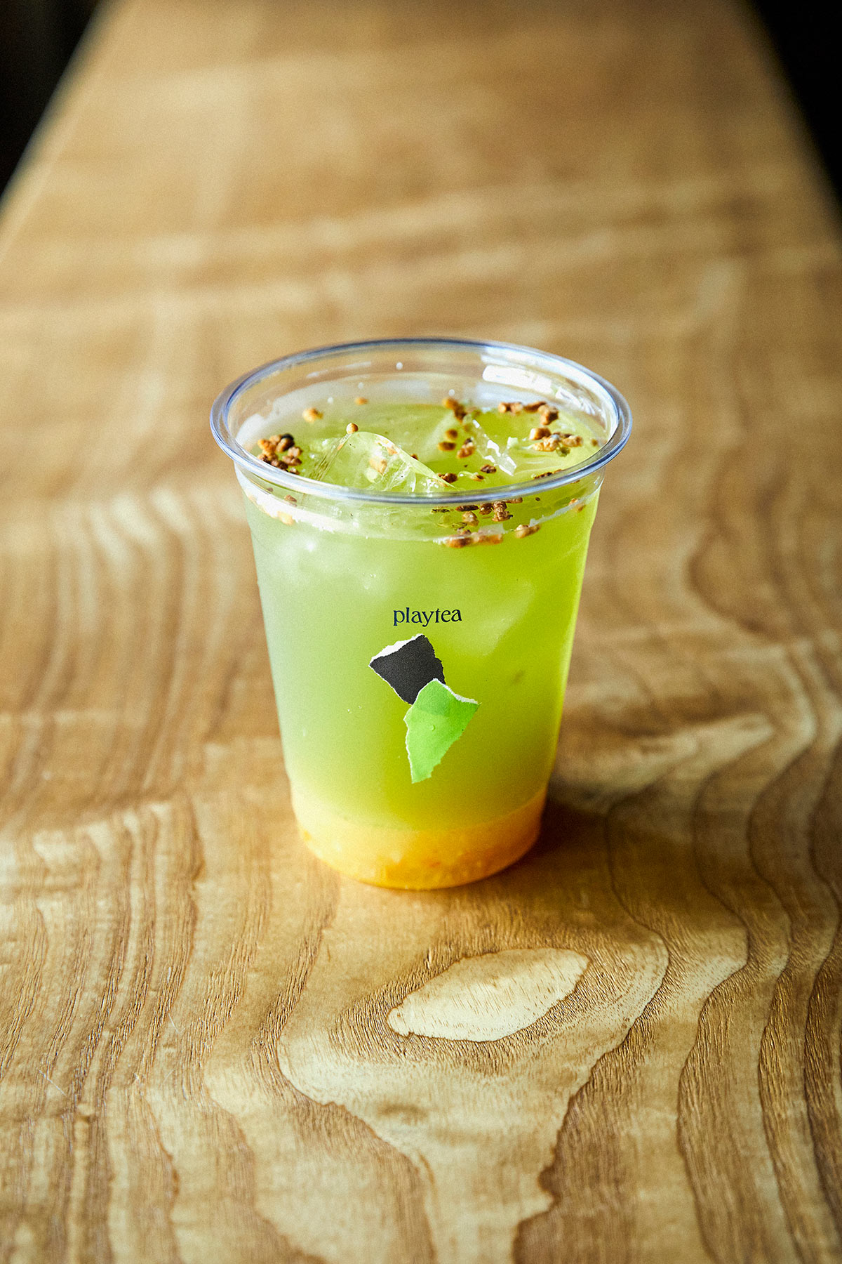 八坂の塔を望む絶好のロケーションに、〈playtea〉が誕生したのは2025年4月のこと。コンセプトに掲げるのは「Life is a Good Play」。金達摩生プーアル茶や元紀熟プーアル茶をはじめ、抹茶や京番茶を使ったアレンジティーを幅広く揃え、遊び心を織り交ぜたお茶の世界を提案する。その一杯は、日々に驚きや楽しみをもたらし、お茶の世界の奥深さを伝えてくれるもの。気軽に立ち寄れるスタイルと、扱う茶葉の上質さを兼ね備えた、新たなティースタンドである。