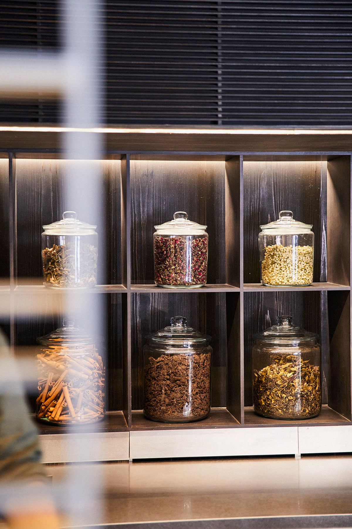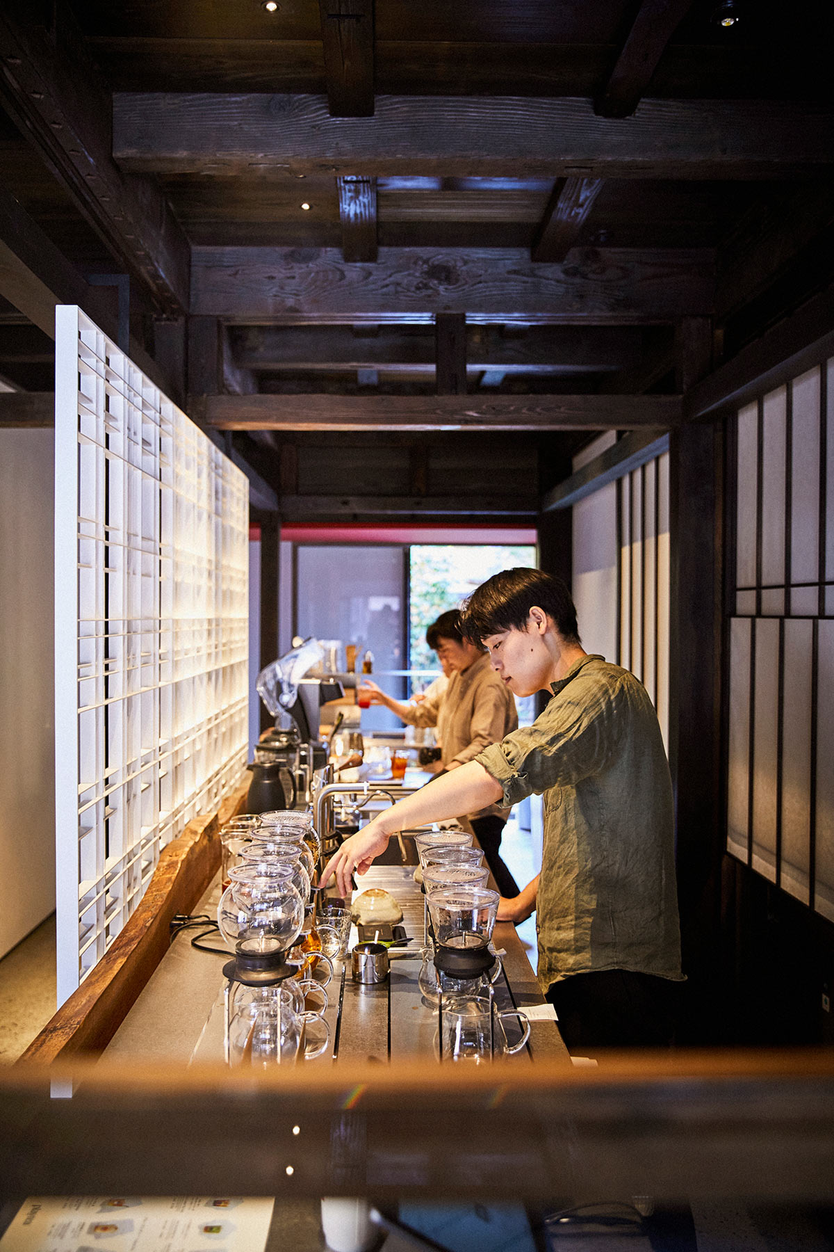 インバウンドで賑わう八坂エリアのティースタンドと聞いて思い浮かべる、観光客向けのありがちなイメージは、いい意味で裏切られる。その味を支えるのは〈POUYUENJI KYOTO〉によって選び抜かれた茶葉だ。隣接する〈POUYUENJI KYOTO〉は、グローバルに古今の希少な茶をキュレーションするブランド。茶のコレクターとしても知られる実業家・蔡其建(チーチェンツァイ)さんが、茶文化がもたらす豊かさを世界中の人々と分かち合いたいという想いから、2024年6月にブランド初の店舗を立ち上げた。ギャラリーショップであると同時に、ゆったりくつろげるティールームも備えている。