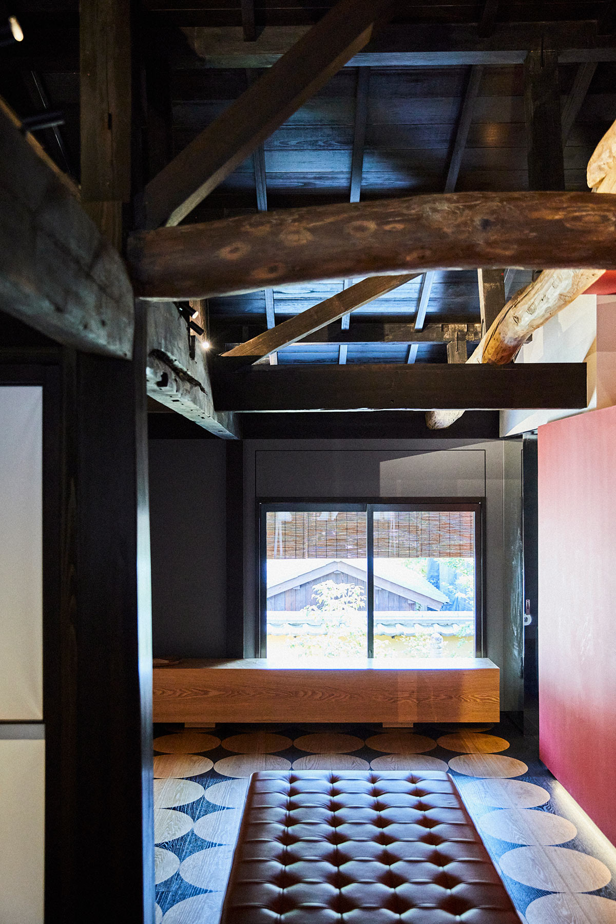 アメリカウォルナットを贅沢にあしらったティーカウンター、赤い壁が印象的な2階フロアは〈POUYUENJI KYOTO〉同様に、ブランド&アートコンサルタントのトニー・チーが手掛けたもの。窓の外には日本を代表する作庭家・北村安夫による庭園が広がる。テイクアウトはもちろん、店内では落ち着いた空間でドリンクをゆっくり楽しめるのも魅力だ。