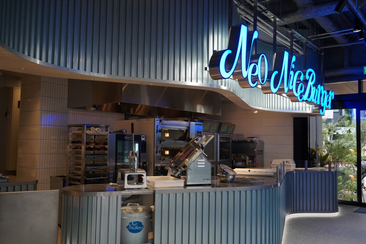 この10月にオープンした渋谷宮益坂店は、1階に新ブランドの〈Neo Nice Burger〉、2階には6種の新作ドーナツが仲間入りした〈I‘m donut?〉が入る。とりわけ注目を集めているのが、平子さんのアイデアが炸裂する新感覚のハンバーガー専門店。「料理人が本気でつくるグルメバーガーをカジュアルな価格帯で」という5年越しの熱い思いがついにかたちとなった。