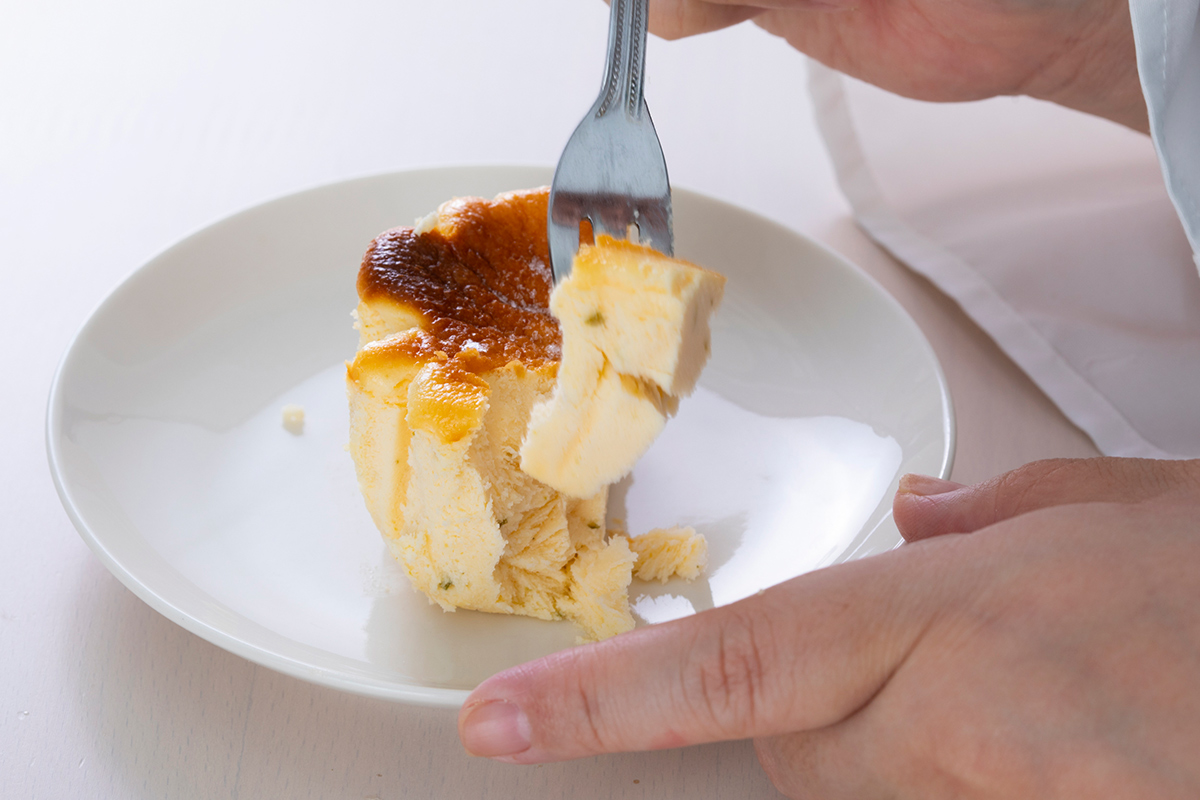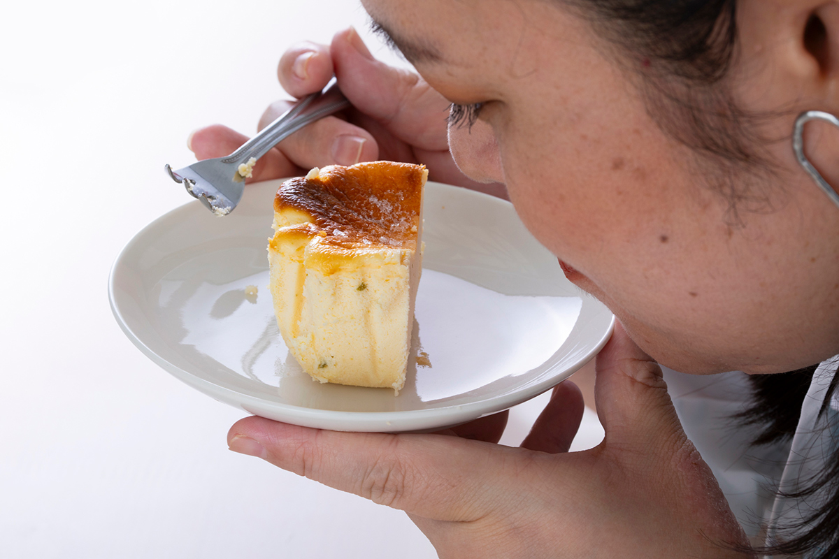 もっとクセがあるのかと思ってたけど、すごく食べやすいし、口溶けもいいですね。チーズケーキって、スフレタイプやレア、バスクと、いろいろな種類があるけど、これはどこの枠にも当てはまらないな……それくらい革新的なやつだ。チーズケーキ好きの人にぜひ食べてほしいですね。きっと目、見開くと思いますよ。