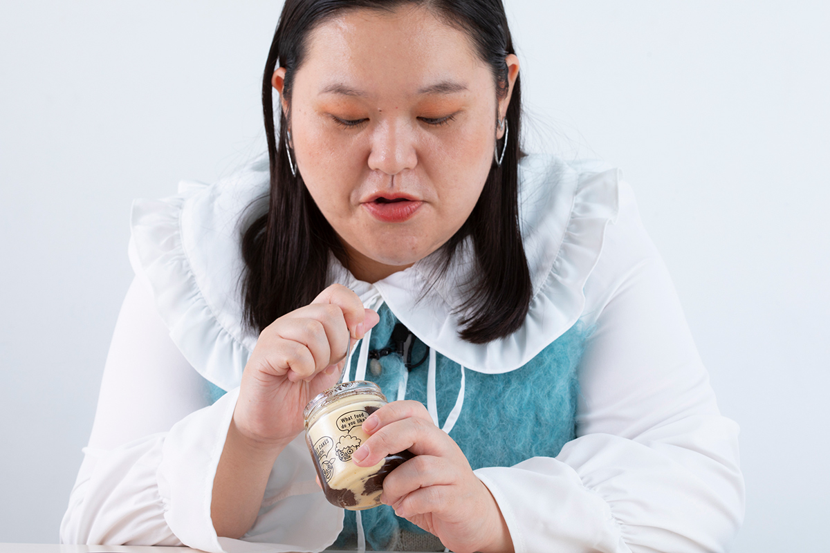 よくコーヒーしみしみのやつがありますけど、あのベチャッとした感じがどうも苦手で。でも、これはスポンジのふんわり感を生かしてあって、クリームもほわっとしています。コーヒーのキリッとした味わいがまたちょうど良くて、まさに真のティラミスですね。一瓶、けっこう大きいと思っていたけど、これはぺろっといけちゃうな。