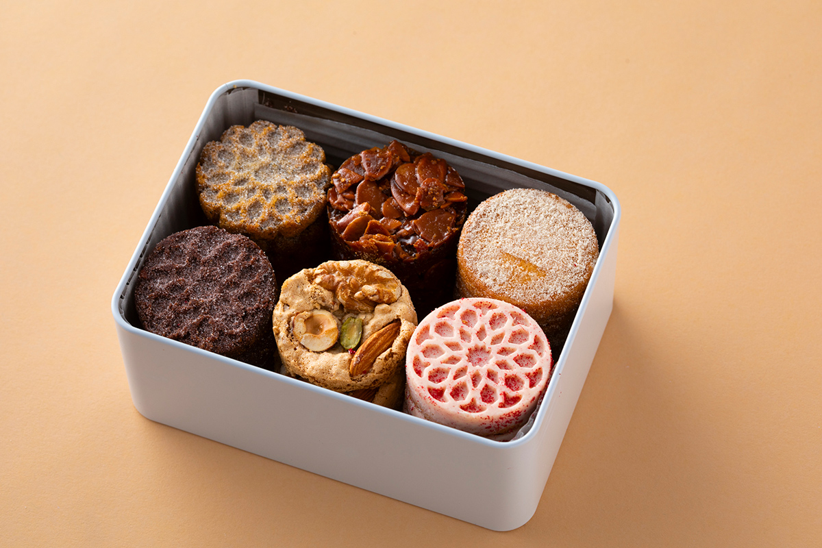 販売してからまだ1年くらいしか経ってないんじゃないかな。クッキー缶にもユキノシタさんらしい綺麗なお菓子が詰まっていますよね。