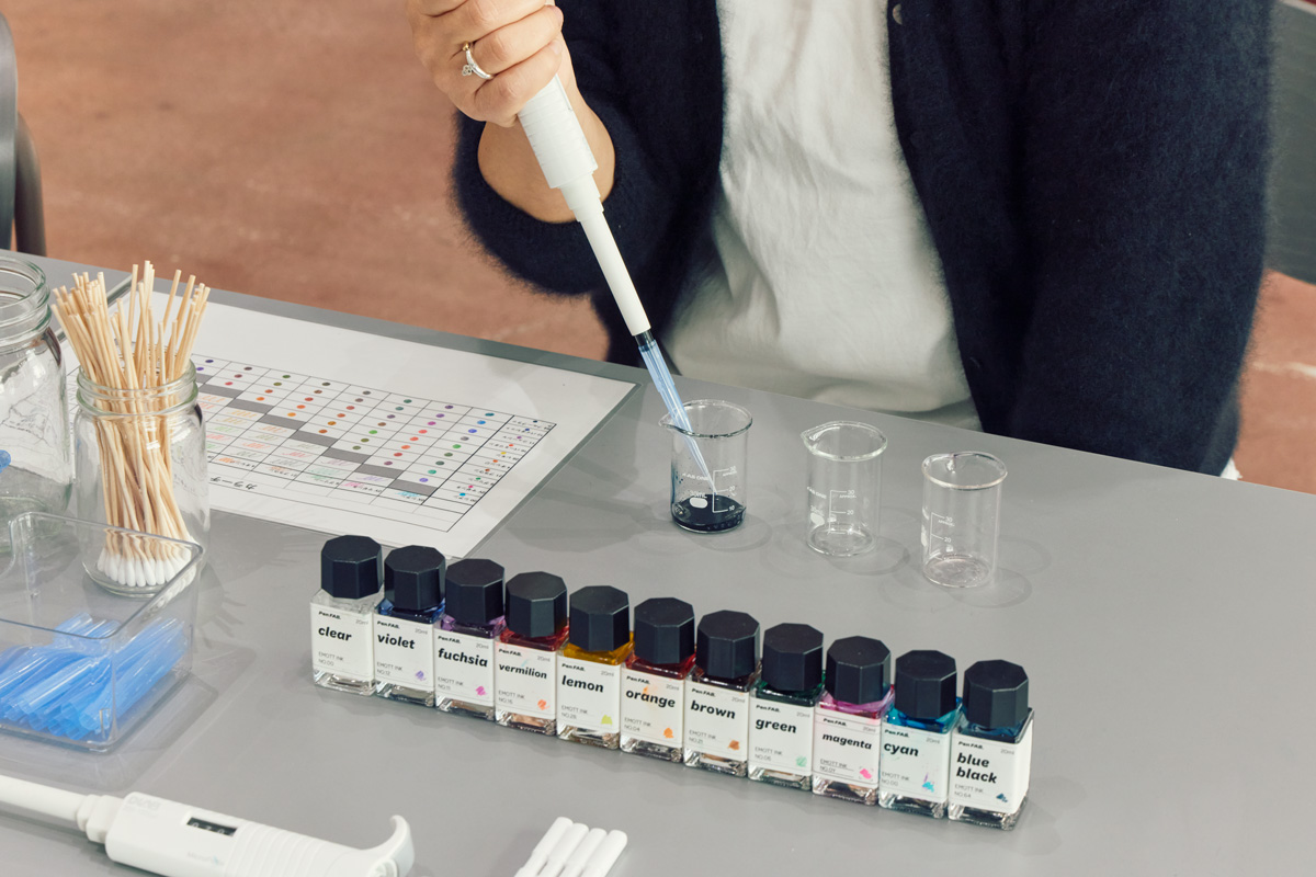 思い思いの過ごし方ができるスタジオの中でも、人気は自分だけの色を調合してオリジナルのペンに仕上げるワークショップ「Pen FAB.」。世界に1本だけのペンをつくり、使って楽しむ優越感にひたれる。
