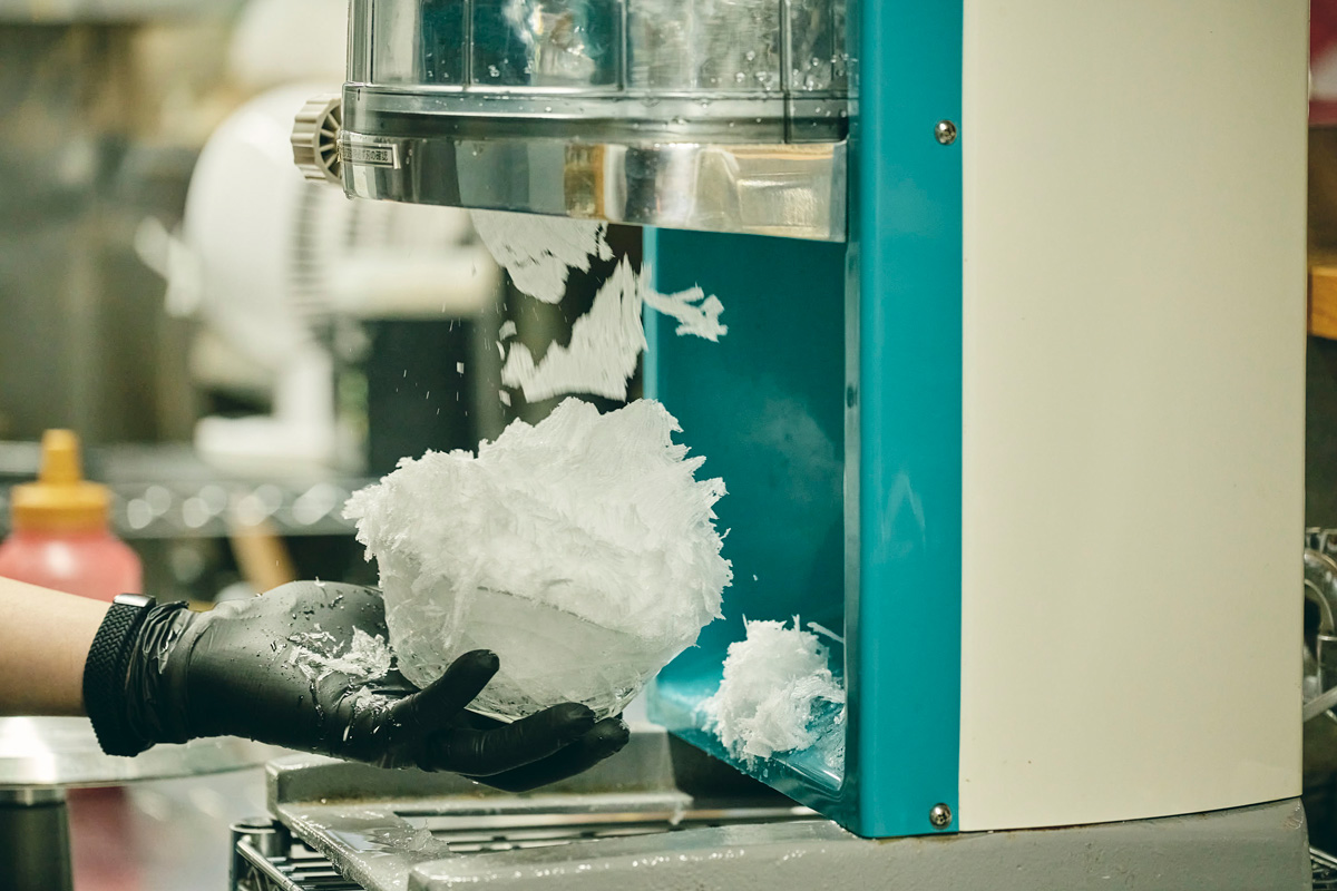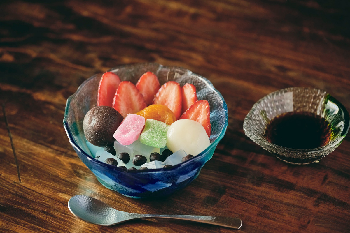 夫婦の祖父がそれぞれ和菓子店を営んでいたことに縁を感じ、かき氷と甘味を看板メニューに決めた。かき氷のメニュー開発に当たっては、神奈川県鵠沼の人気店〈埜庵(のあん)〉にアドバイスをもらい、季節ごとに旬の素材を使ったシロップづくりにとことんこだわる。