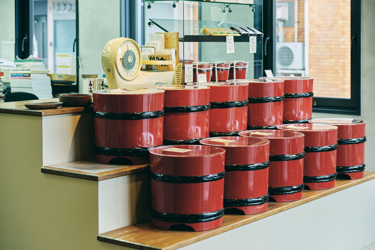 JR大井町駅から東へ進み、飲食店が立ち並ぶエリアを抜けると、容量4トンもの巨大な味噌桶をディスプレイした平屋造りの〈仙臺味噌醸造所〉にたどり着く。