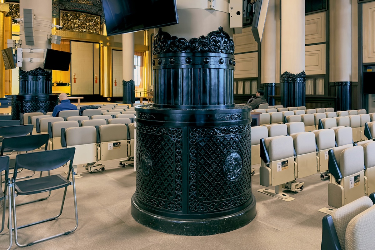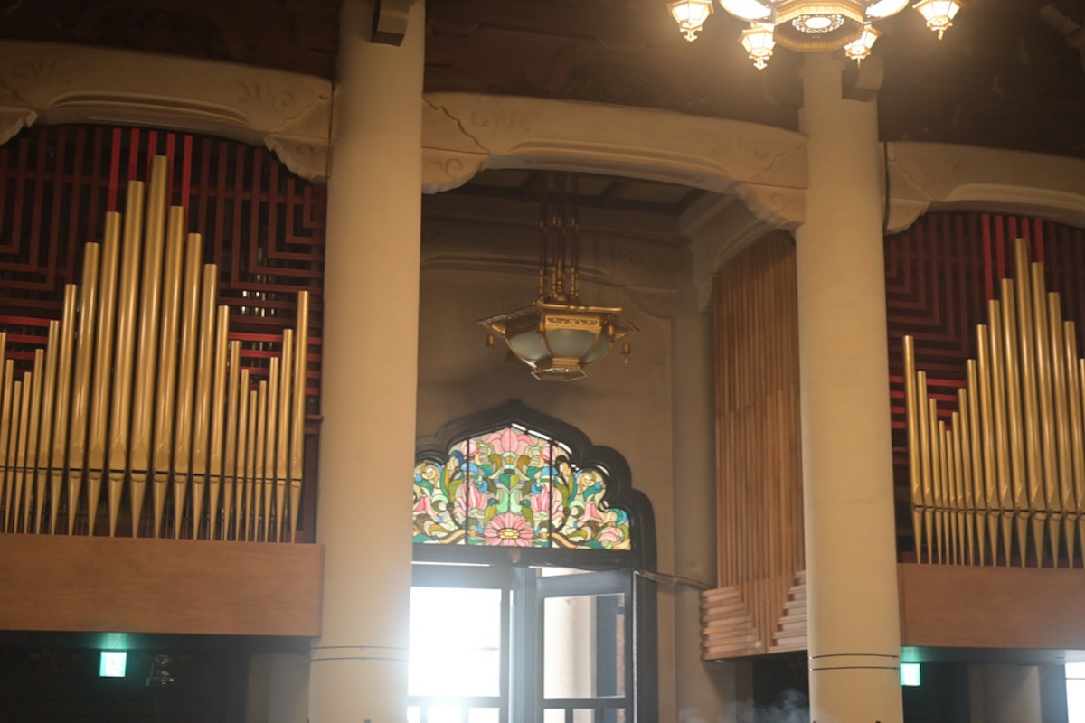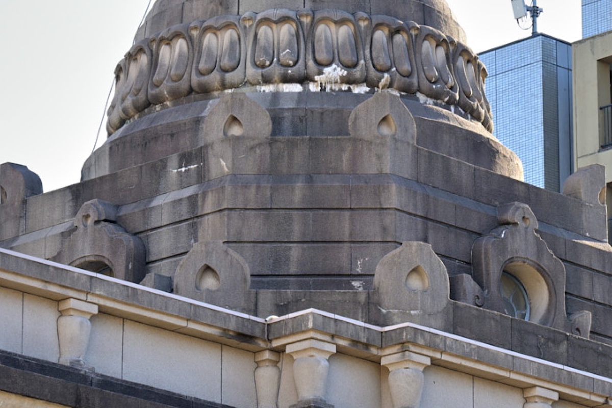 そして、実際に築地本願寺の内外には、当時では珍しい、最先端の技術や未来の生活様式を見据えた、建築史家の伊東忠太ならではの工夫があちこちに散らばっている。