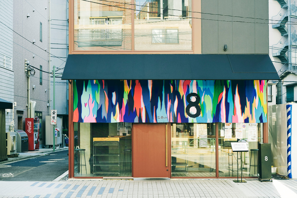 JR大井町駅東口の飲食店が立ち並ぶ商店街沿いに、“8”と書かれたカラフルな暖簾が目をひく建物がある。大井町出身のオーナー中田一さんが「地元を盛り上げたい」と、創作和食の店に続いて2015年に立ち飲みスタイルの〈立呑み8(はち)〉をオープン。ビルの建て替えに伴い、25年5月に隣の土地にビルを新築して移転したのが現店舗だ。