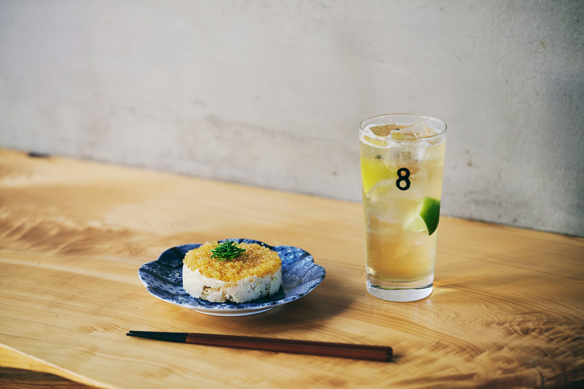 キリッと冷えた日本酒をゆるゆると飲むもよし、レモンやライムなど数種の柑橘を使った爽やかな「8角ハイボール」を合わせるもよし。