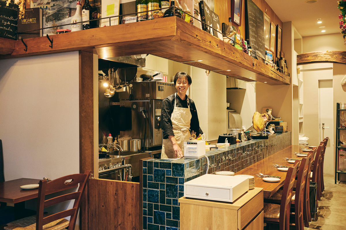 都内の老舗スペイン料理店で研鑽を積み、バルブーム全盛期には人気店〈Bar de Ollaria(バル デ オジャリア)〉で料理長を務めた浅井悠紀さん。2024年、大井町に構えた自らの店〈alfredo(アルフレッド)〉では、正統派スパニッシュにアレンジを施して楽しさやおいしさをプラスする。