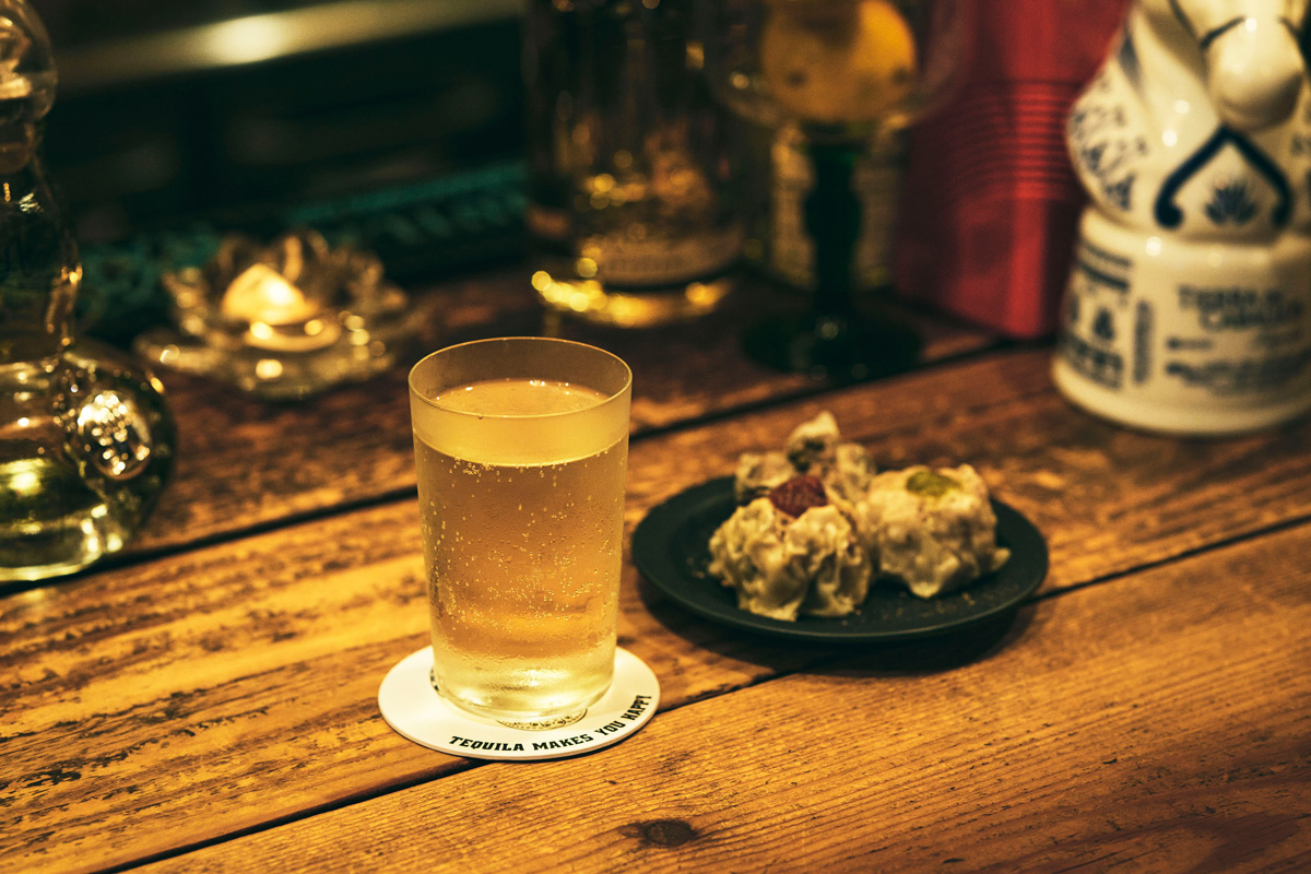 初めてならば、「オリジナルテキーラハイボール」をぜひ。5種類のプレミアムテキーラを“神ブレンド”した一杯はお代わり必至! 気まぐれタコスや自家製焼売との相性もすこぶるいい。要予約でコース料理も受けつけている。