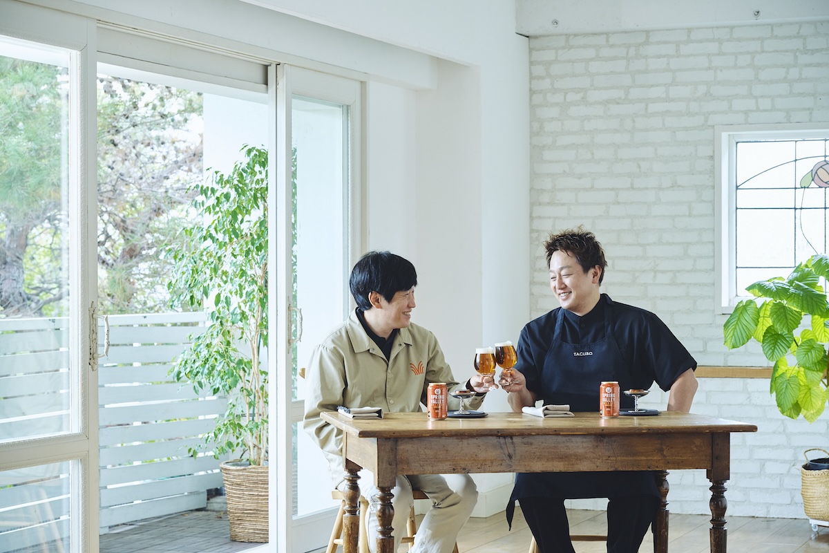 「バニラを加えたビールを作ってみたくなりました」(蒲生さん)、「いいですね、コラボしましょう」(田窪シェフ)と意気投合したお二人。スイーツとビールの出会いに乾杯!
