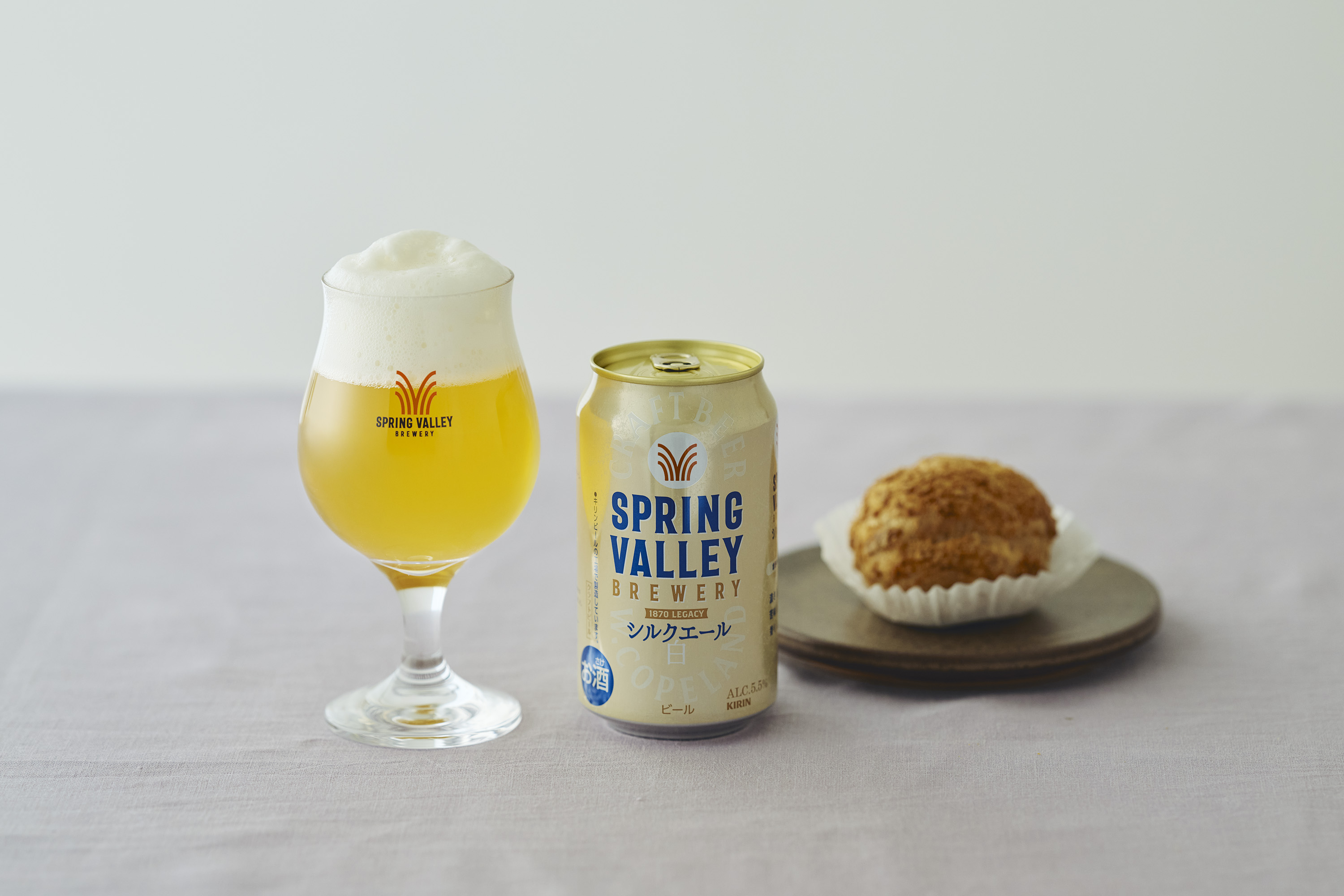 シルキーな泡の「SPRING VALLEY BREWERY シルクエール 白」は、なめらかなカスタードの「シュークリーム」と共演を。