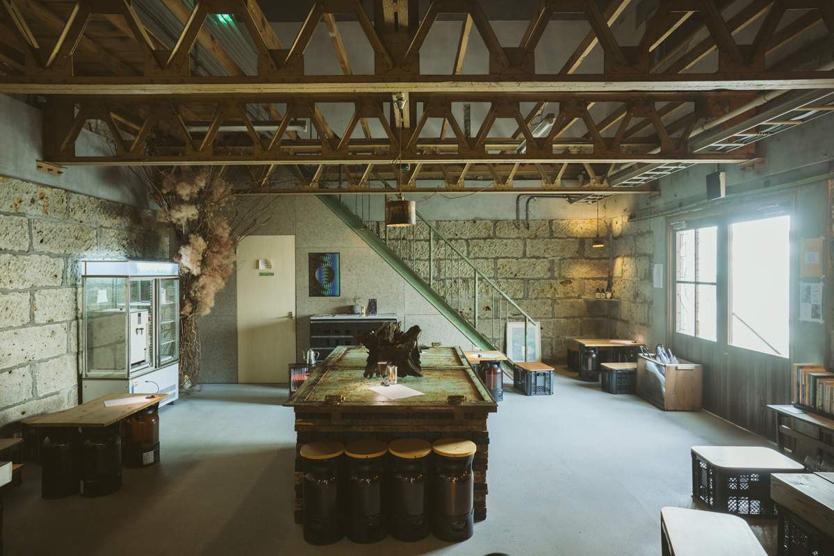 福島クラフトビールシーン注目のニューカマー。長野県野沢温泉のブルワリー〈AJB〉でビール造りを学んだ佐藤孝洋さんが2024年、故郷の郡山市で開業した。酒屋の倉庫だった石造りの建物を改修し、タップルームも併設。鉄製の外戸をテーブルに、ビールケースをスツールにと、倉庫の備品等も内装に生かしている。