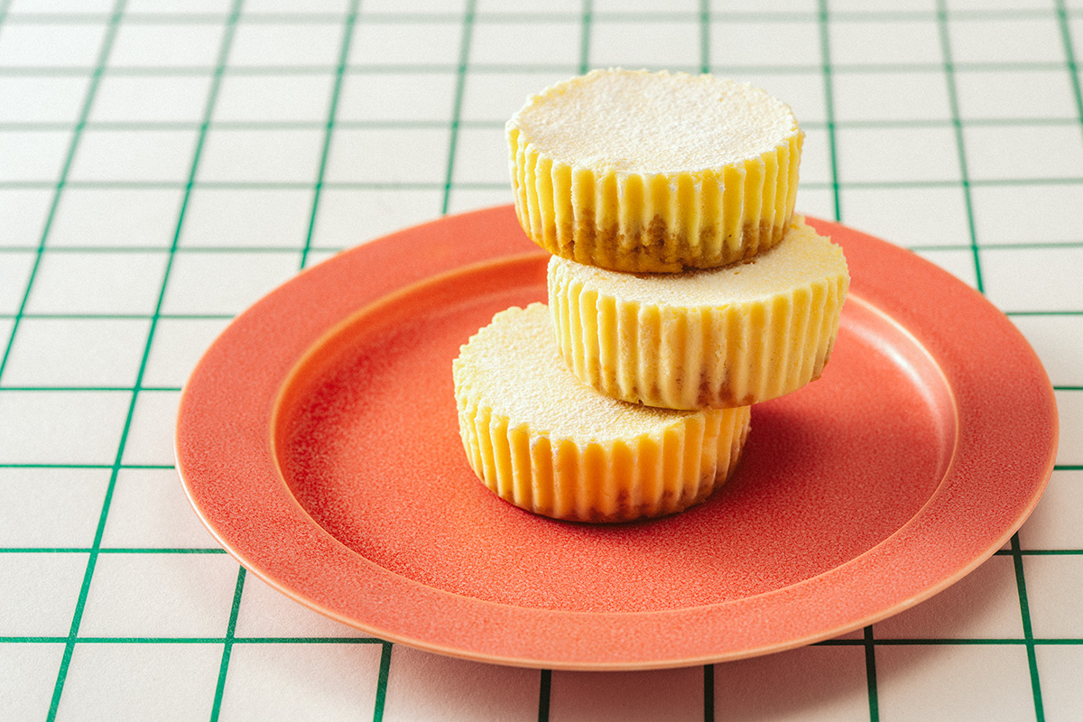 最もこだわったのは、どっしりと濃厚な味わいのチーズケーキながら、とろける口どけのよさ。火加減を調整し、焼き色をつけずに水分をとじこめて仕上げてある。こっくりとリッチなクリームチーズの風味が口いっぱいに広がり、舌の上でなめらかにとけていく。底に敷いたクッキーのザクザクとした食感がアクセントに。