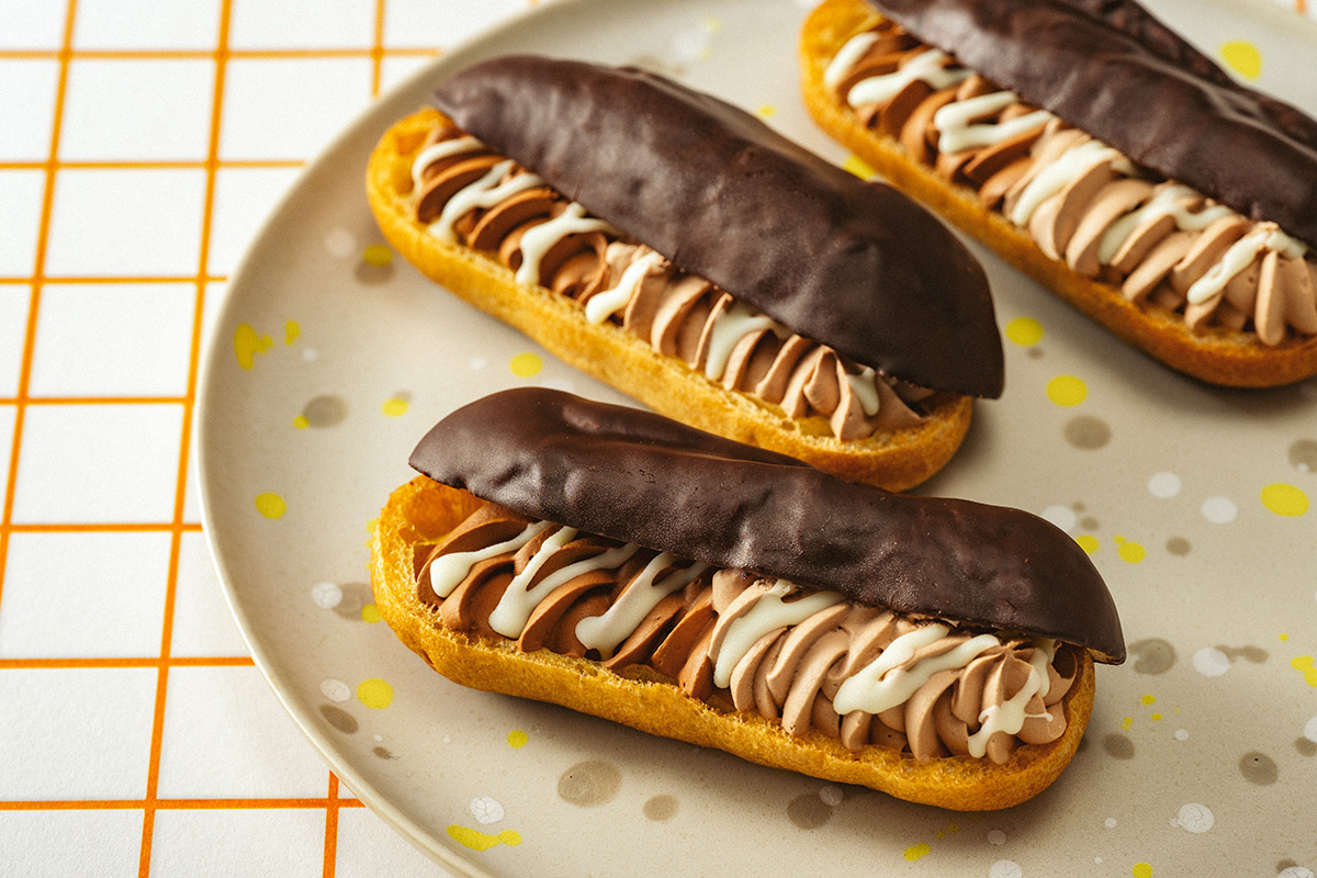 3、ふわっパキッ!4種のチョコを味わう「クワトロチョコエクレア」