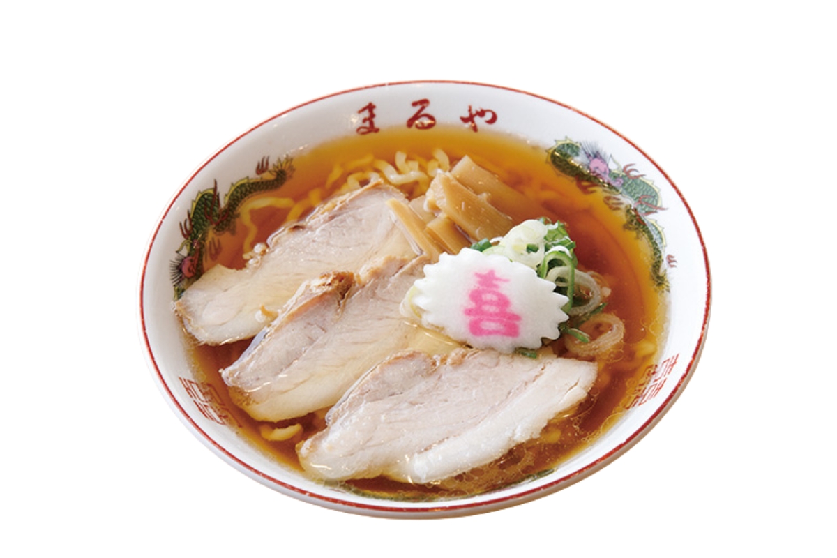 店内奥に設けられたイートインコーナーでは、3~4日ほどのペースで出店者がローテーション。写真は喜多方ラーメンの王道を表現する〈まるや〉の一杯。