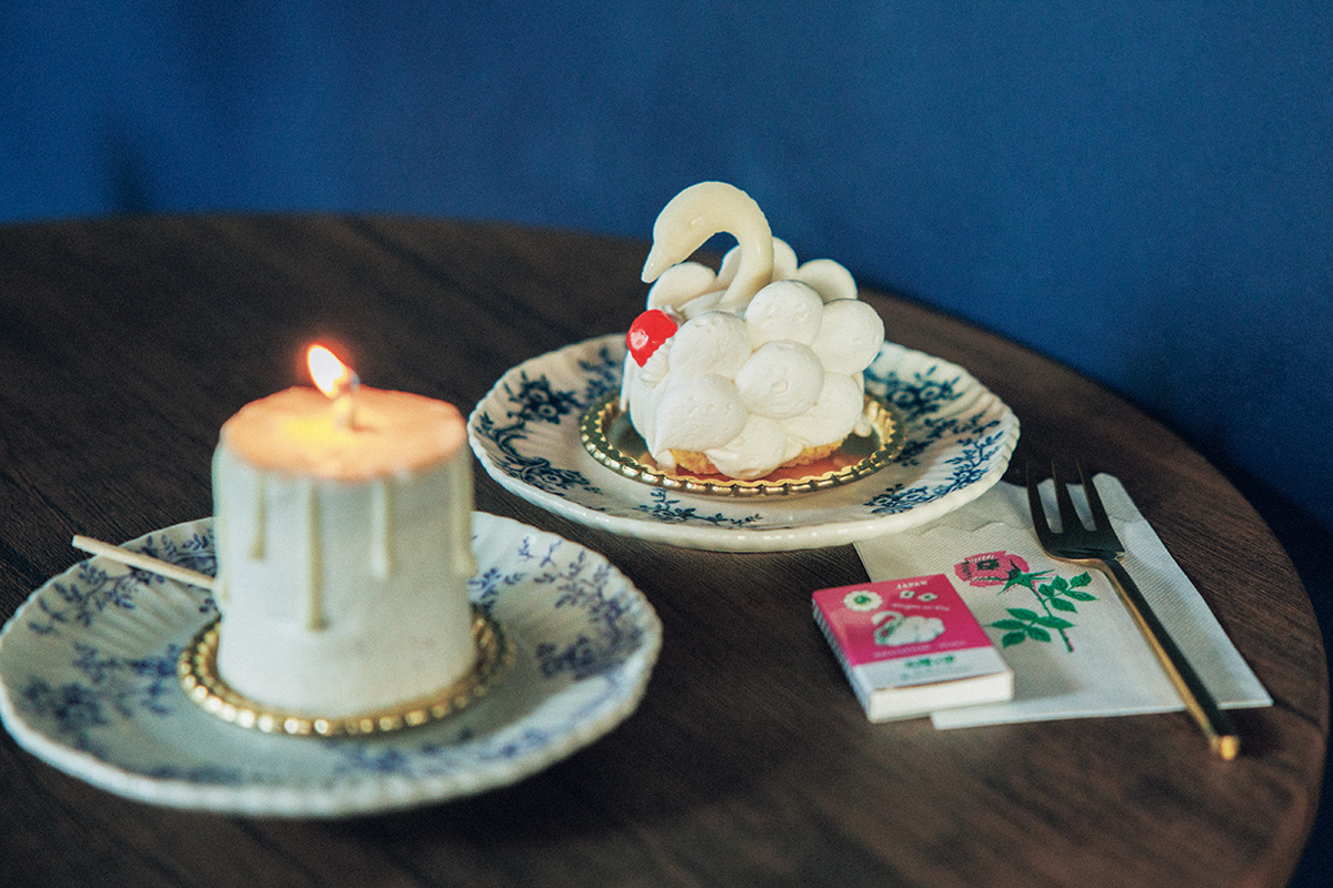 前回大阪万博があった1970年代を彷彿とさせる、レトロな洋菓子店。大阪らしい「洋菓子の“粉もん”」をテーマに生まれたこちらは、ミャクミャク総柄缶に、スペインの伝統菓子・ポルボロンをぎゅっと。口の中でほろっと溶ける素朴な味わいと、つい手が伸びる絶妙なサイズ感、缶のファニーなデザインが相まって大人気に。スワンモチーフのロールケーキなど、ビジュの良い生ケーキもここまで来たらぜひ味わって!