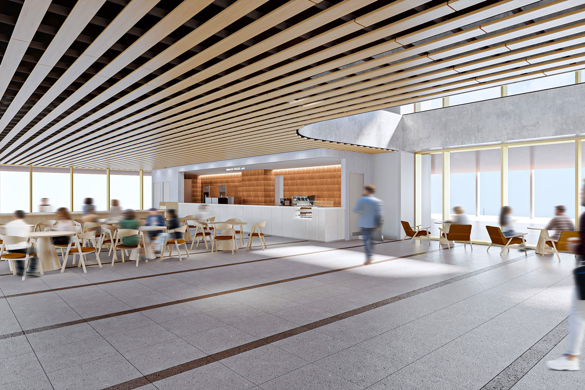 〈OIMACHI TRACKS〉には、ビジネスタワーと商業施設(ショップ&レストラン)にそれぞれタイプの異なる2つのシェアオフィスが存在。用途にあわせて使いわけられる。