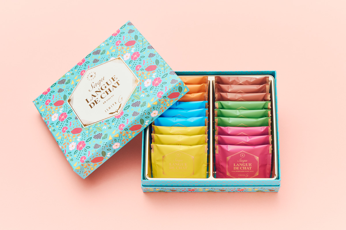 フレーバーは6種類。それぞれ異なるラング・ド・シャ(クッキー生地)とチョコレートを組み合わせている。たとえば、北海道十勝産のゴーダチーズを練りこみ、オホーツクの塩がアクセントのチョコレートを、爽やかなレモン風味のラング・ド・シャでサンドしたものや、北海道産のミルクやワインを用いたものなど。