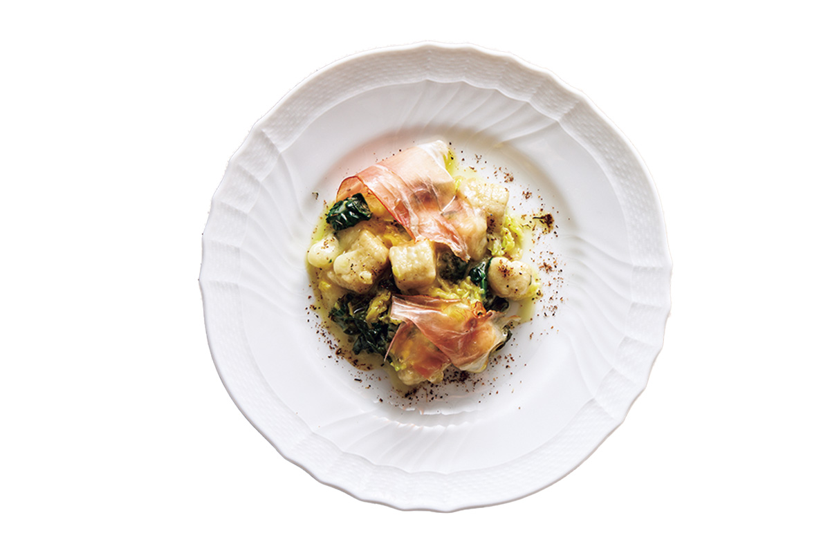 国領にある〈ドン ブラボー〉の姉妹店。柴田正幸シェフがイタリア修業時代に出会った郷土料理に、和のエッセンスや独創的な発想を織り交ぜた料理を提供。名物の「ぶっかけピザ」などコースのピザは7 種類から選べる。