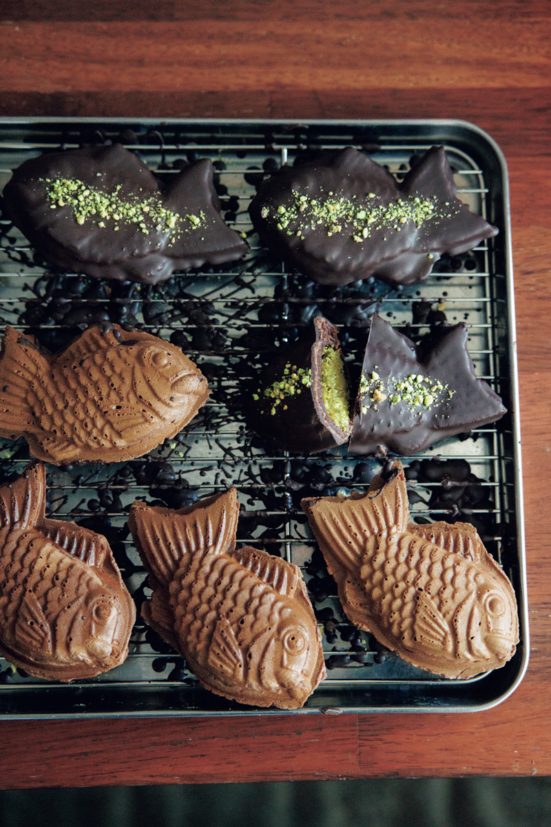 定番屋台スイーツ、プンオパン(鯛焼き)がドバイ化。ココア味の生地の中にたっぷりと“ドバイ”を詰めてチョココーティング。
