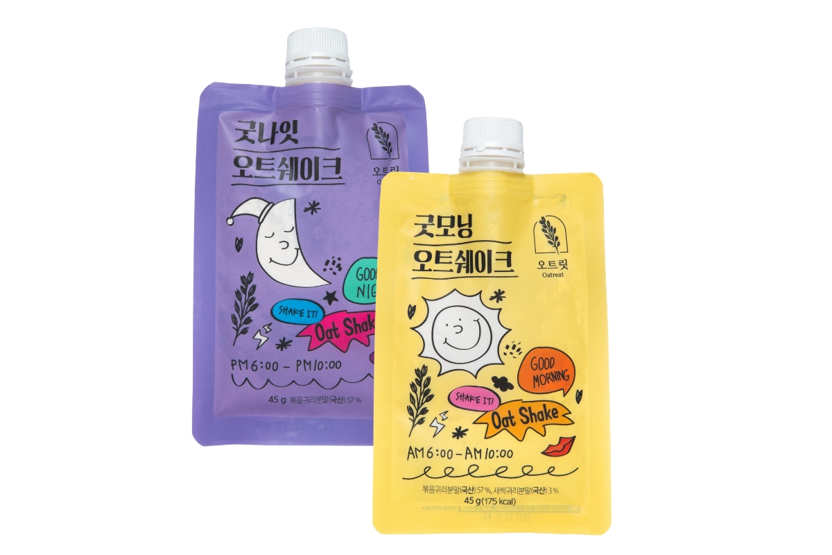 康津産米&オーツ麦を使用したオーツミルクシェイク。砂糖、小麦不使用。朝食、夕食タイムに水または牛乳で。各3,900ウォン(45g)。