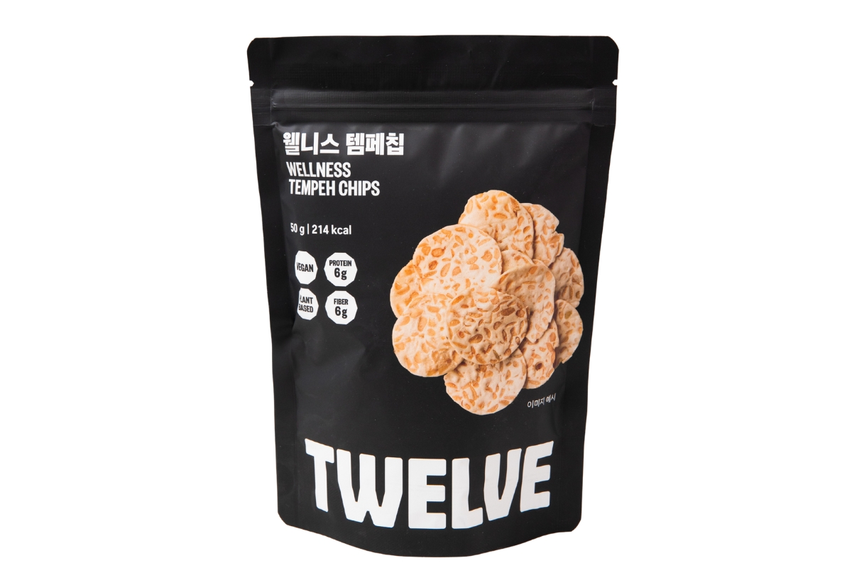 インドネシアの大豆発酵食品テンペを薄くスライスして揚げたビーガンスナック。たんぱく質6g、食物繊維6g。4,800ウォン(50g)。