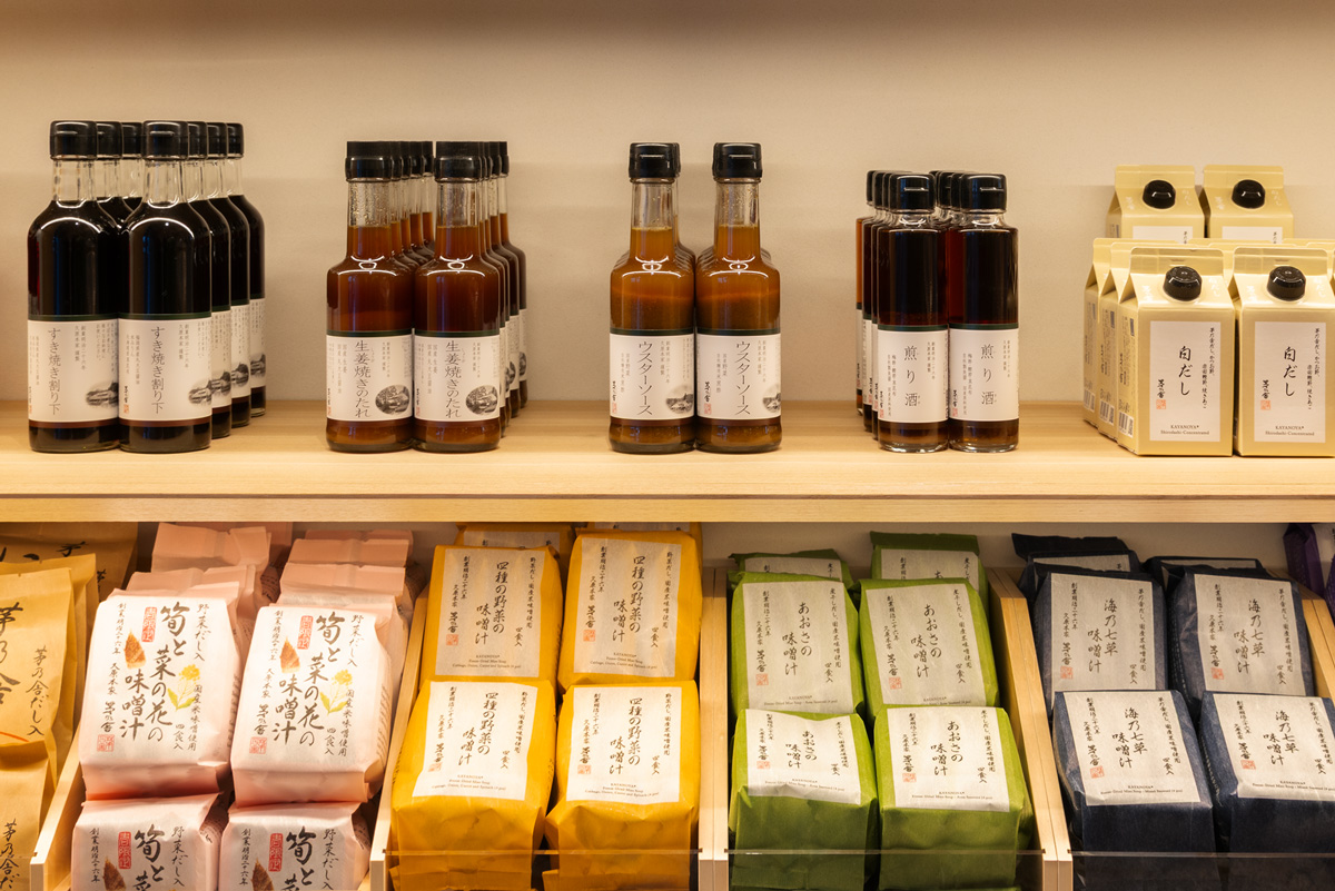 〈久原本家〉が展開する人気ブランド「茅乃舎」初となる旗艦店。日本の食を支えるだし文化の発信拠点としてオープン。