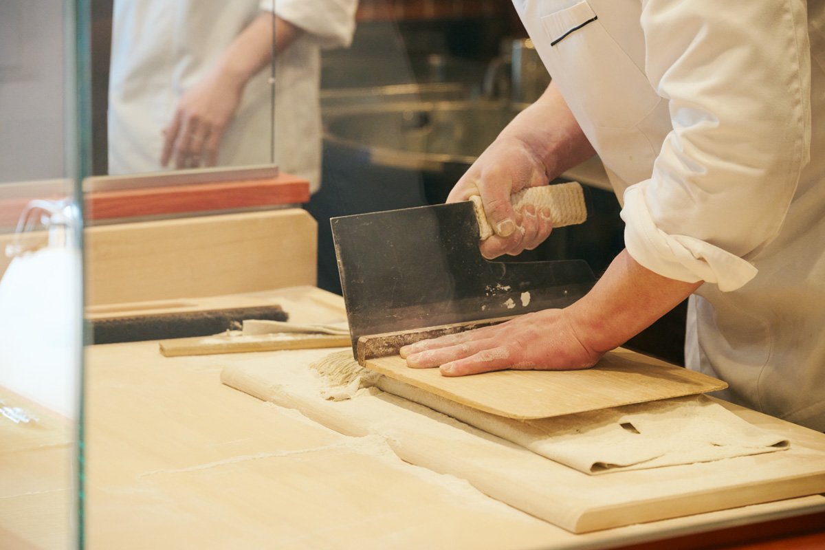 香りの強い北海道産と、2年間寝かせて旨みを深めた福島県産の蕎麦粉をブレンドし、バランスの良い味に。