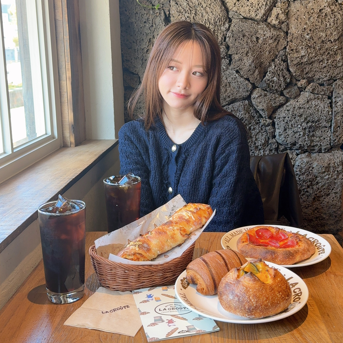 〈LA CROUTE〉は、パンの種類がとにかく豊富! 塩パンやサンドイッチなど、ランチとしても満足できるラインナップ。中でも印象に残っているのは、ガーリックやオリーブが効いたしょっぱい系のパンで、甘いものよりもそちらが断然好みでした。