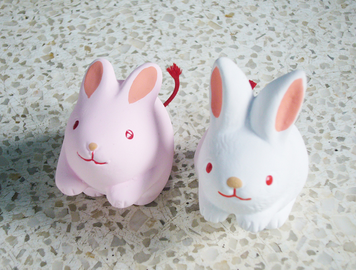昔この付近が野うさぎの生息地だったこと、そしてうさぎが多産であることから、子授け・安産の神社として信仰を集める。社殿の左右に2体の狛犬ならぬ狛うさぎが鎮座し、頭をなでると、夫婦円満・家内安全のご利益があるとか。お守りや絵馬もうさぎずくめ!