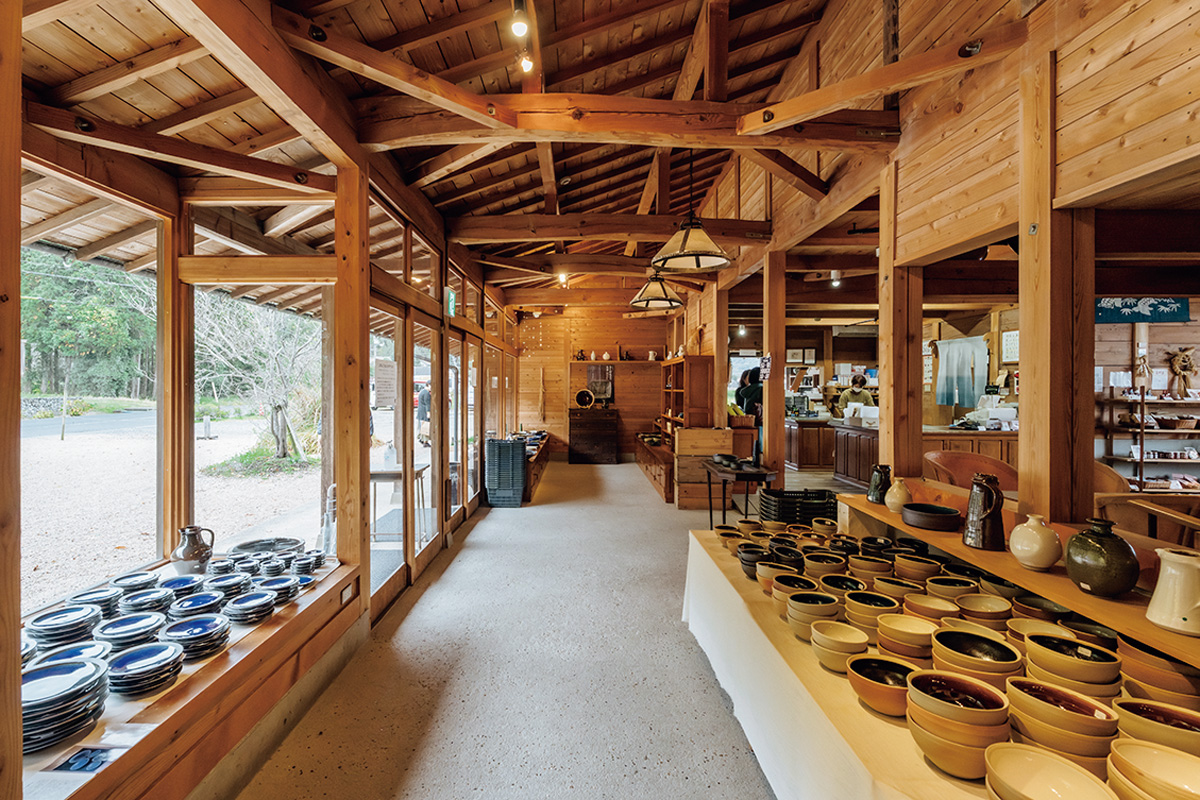 ギャラリーショップには手頃な値段で日々に役立つ器が並ぶ。工房も見学可能。