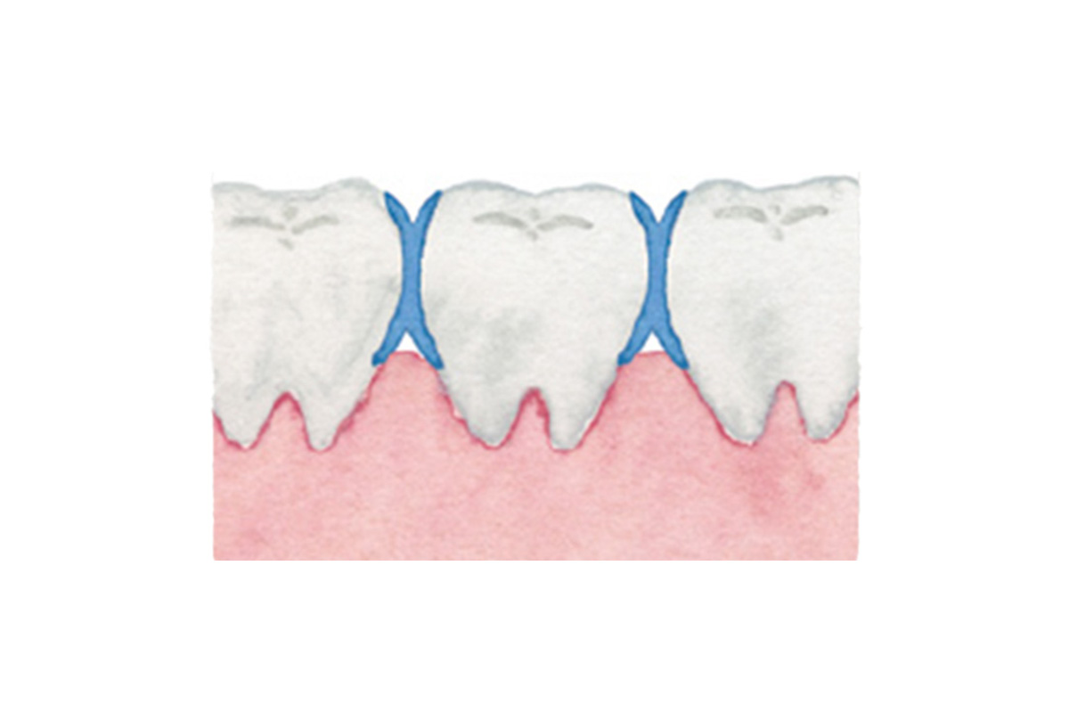 「歯と歯の間の汚れや歯垢を落とすには、歯ブラシだけでは不十分。ある程度、擦り落とす圧も必要となるので、ウォーターフロスではなく、糸タイプのものがベター。衛生面に考慮した上でも、自分で長さを調節できるロールタイプを。歯の側面に沿わせ、歯周ポケットの浅い部分まで入れ込んで」