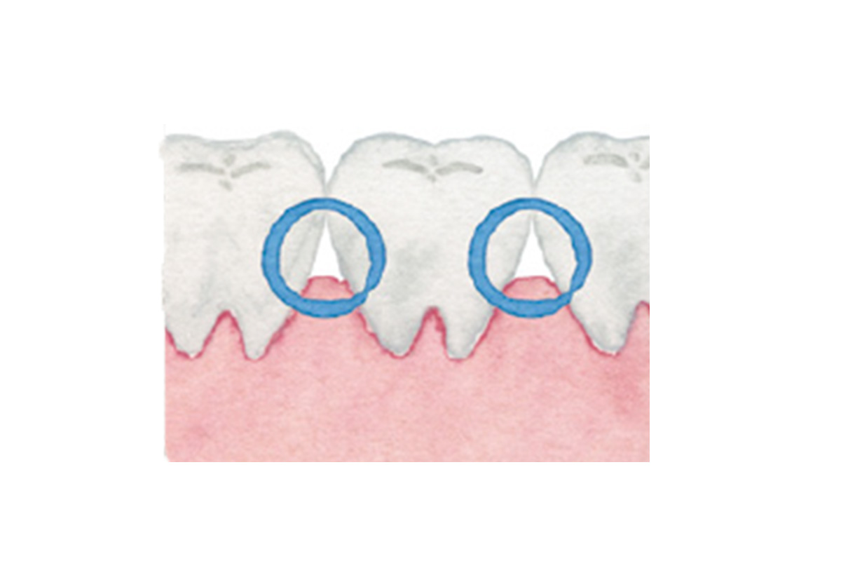 「歯垢が、歯と歯茎の間に入り込んで引き起こされる感染症。進行すると歯を失う可能性も。歯茎が腫れたり、赤くなっていたら炎症のサイン。痛みなどの症状が出にくいので、定期検診を心がけて」