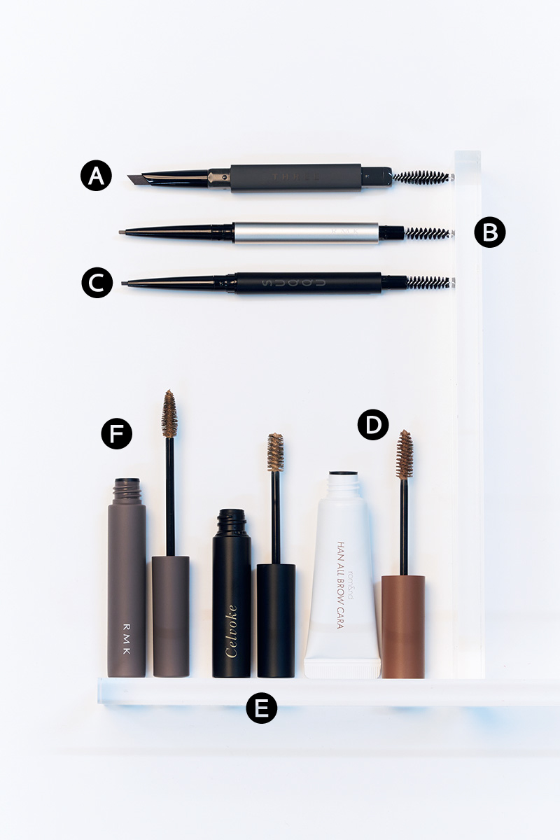 今ドキ眉を目指すポイントは、グレー系のアイブロウペンシル×ミルキーベージュのアイブロウマスカラの組み合わせ。これが、顔になじみつつ軽やかな眉印象を叶えてくれる。
