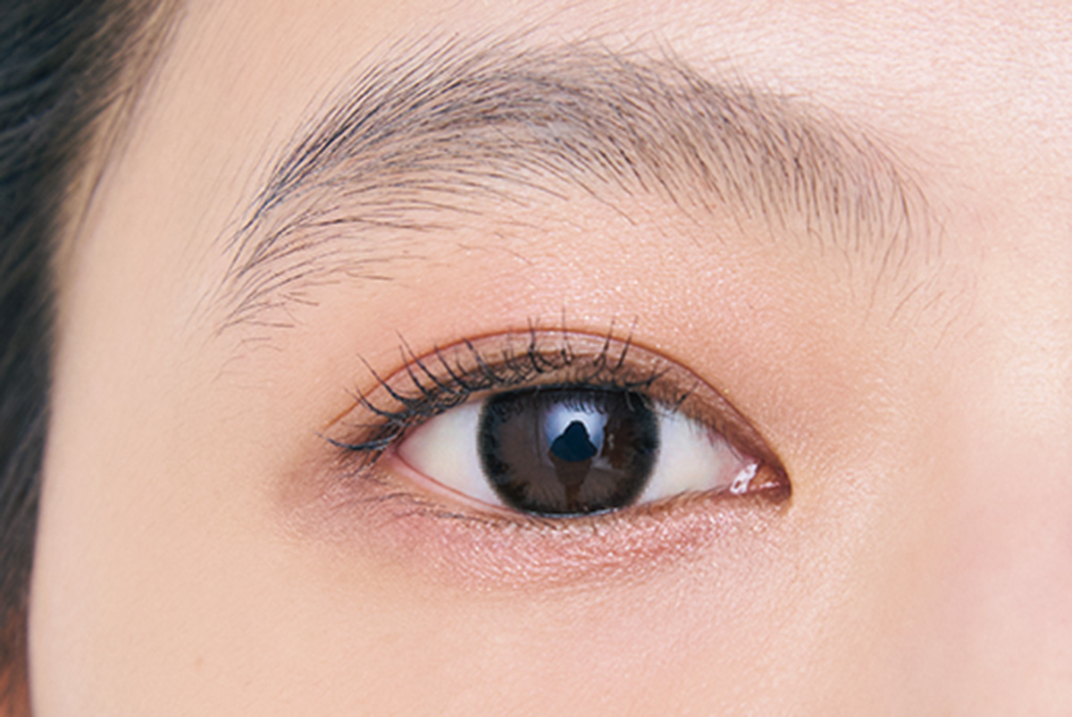 「アウトラインがぼやけがちな大人の目元にアイラインは必須。ただし、まぶたが下がってきても見える目尻に入れるのがコツ。黒ではなくグレージュぐらいのニュアンスカラーがちょうど良い。まつ毛を1本足すイメージで目尻に」