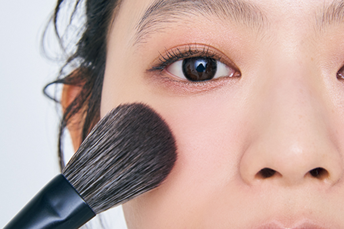 いつもの顔が垢抜けるちょい盛りメイクのコツ4. チークはハート型。色違いで2カ所に。