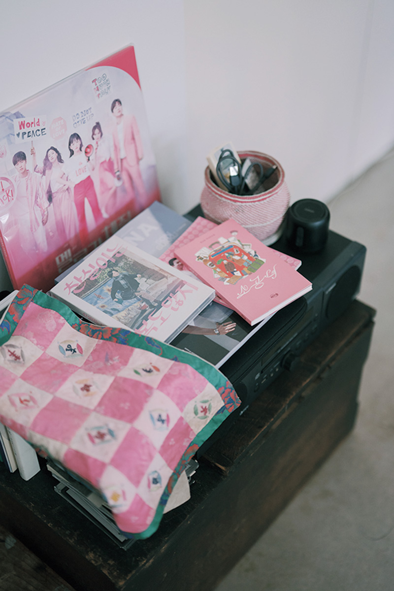 韓国のピンクの色味が好きで、垢すりタオルから民芸品までつい買ってしまうのだとか。好きな韓国映画やドラマのグッズもなぜかピンク多め。